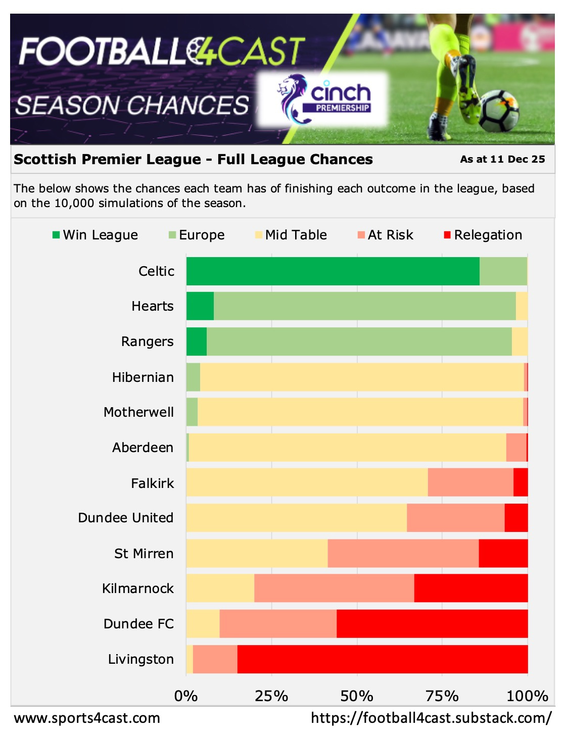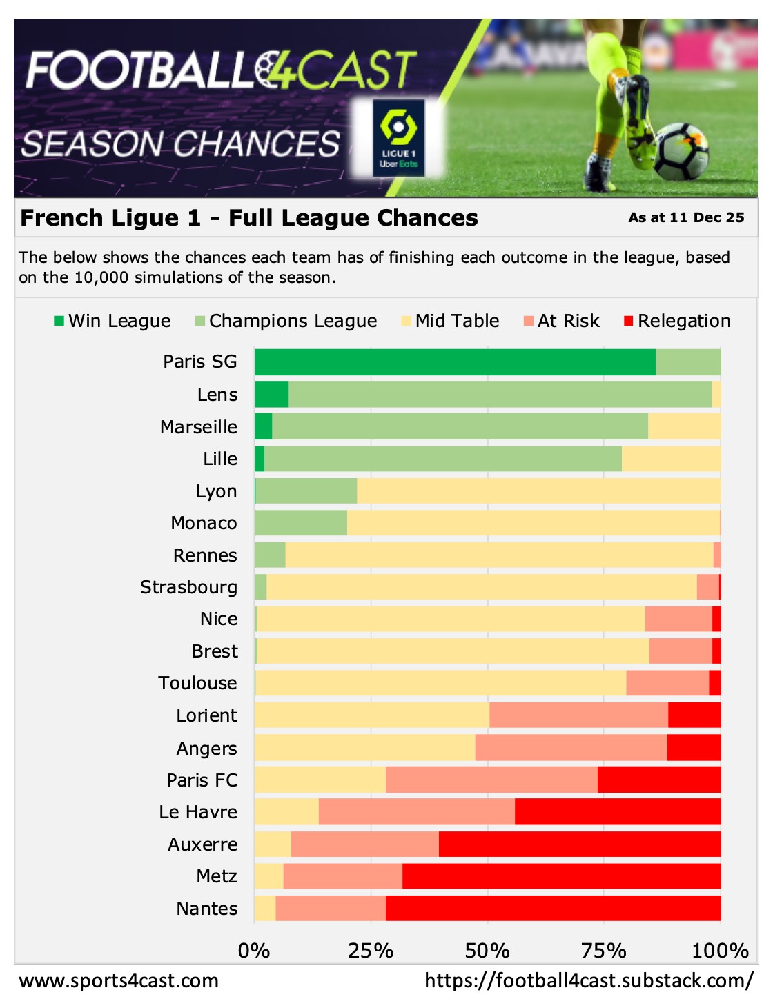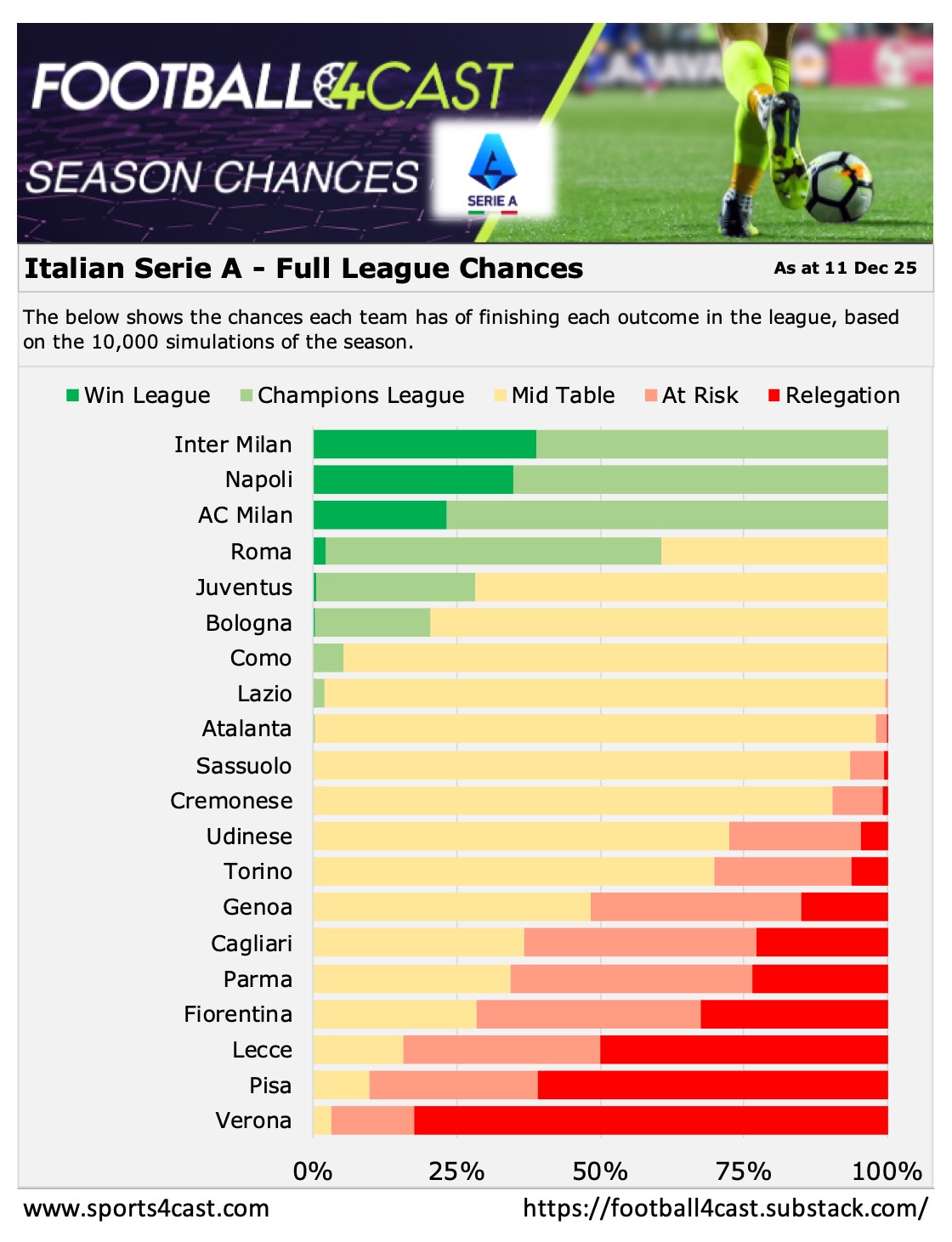 🏆 Below is our season analysis for each league, showing the chances each team has of finishing in each ‘bucket’ - based on 10,000 simulations of each tournament. 📊